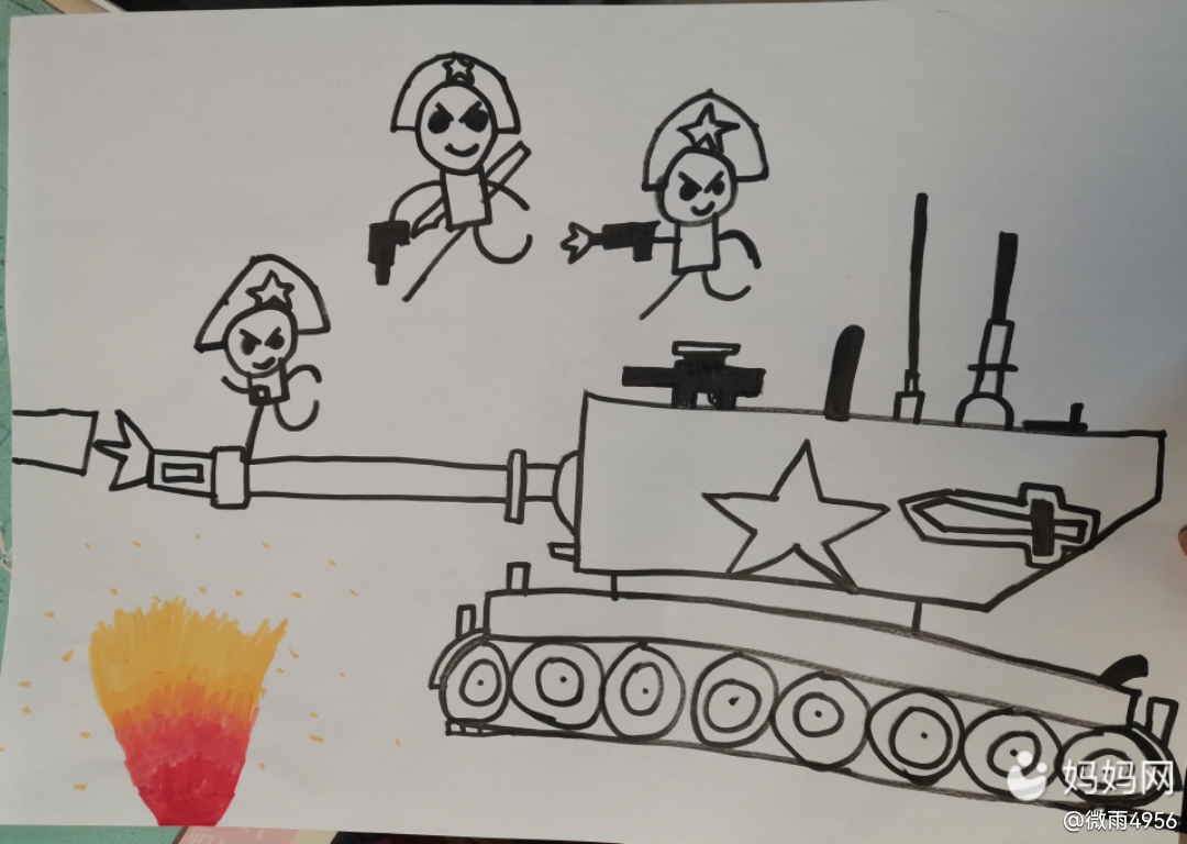 抗战片看多了,小家伙天天画打仗