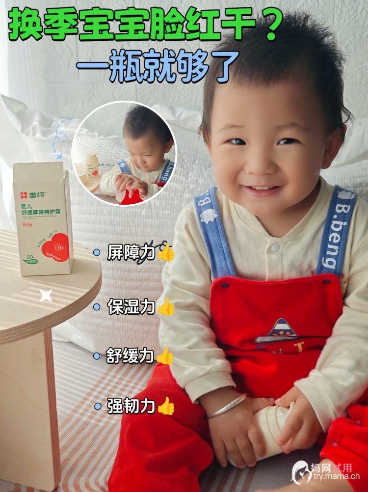 现在每天出门前我都会给娃抹一层,风再大也不怕。有了童将高倍特护霜,宝宝的小脸就能安稳度过换季期啦~