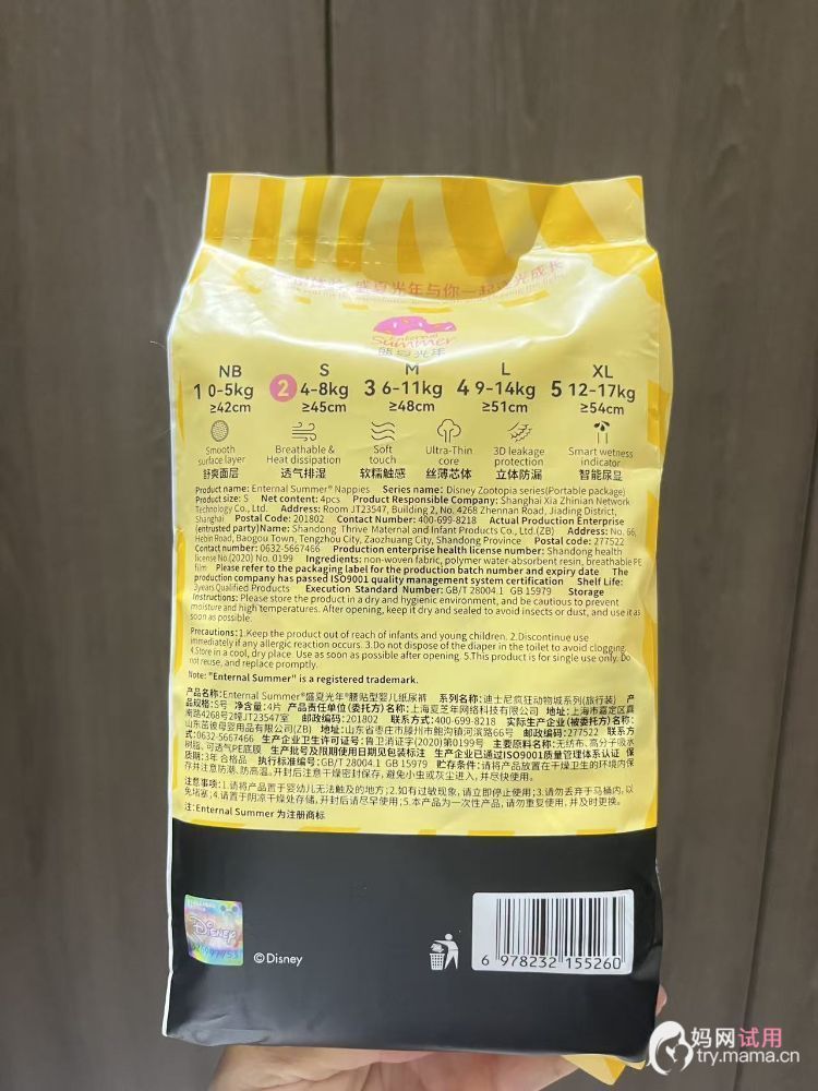 盛夏光年疯狂动物城的纸尿裤,除了外观的图案好看以外,它的纸尿裤也设计的非常的好。它是采用的五大全新仿生体感。它采用的是云柔裸感腰围不易勒肚,弹力超级大收放自如。而且采用的是七根记忆橡筋护围,超级贴合,防侧漏。采用的是0.6d空气纤维,超柔软,0.1厘米吸水芯体,超级轻薄,仿生爪爪面层超舒服更透气。而且这个爪爪吸水面看起来也非常的可爱。