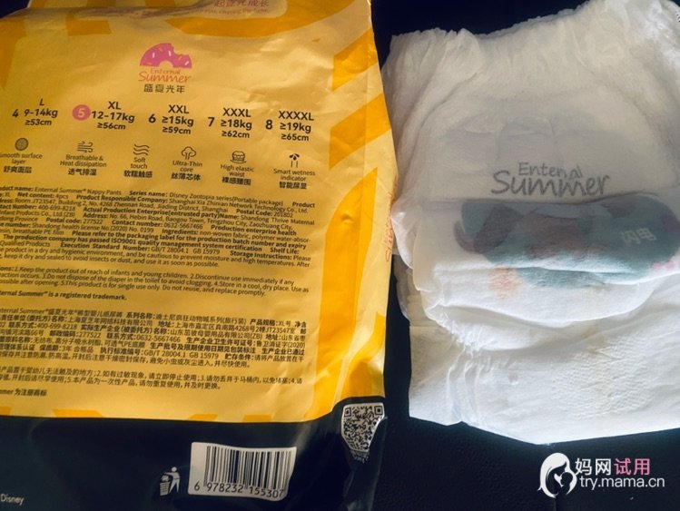 非常感谢商家和妈妈网给宝宝宝宝使用盛夏光年迪士尼疯狂动物城纸尿裤的试用机会!收到这款纸尿裤,真的是高颜值,吸睛指数满分。拆开外包装,抚摸一下纸尿裤,手感非常的柔软,捏一下厚度,真的是超薄。首创的 5D仿生爪爪面层,触感真的是超级细腻,贴合宝宝小屁屁,不会磨红、不会刺激。 云柔裸感腰围,宝宝穿着舒舒服服,没有勒痕,全新超细裸感橡筋轻柔不勒肚,宝宝怎么翻滚都能舒展自如。宝宝试穿了一上午,吸收量大,不反渗,不侧漏,不红小屁屁,而且有智能尿显,更换起来十分方便,透气性好,小屁屁不闷热,干干爽爽的。盛夏光年迪士尼疯狂动物城纸尿裤,柔软、透气、防漏、吸量各方面表现优秀,宝宝的纸尿裤,就选择它了。