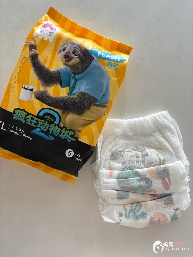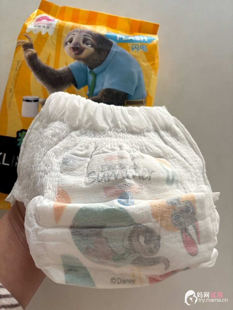 家人们谁懂啊!给娃薅到盛夏光年迪士尼疯狂动物城联名纸尿裤的试用装,本来没抱太大期待,结果用下来直接被圈粉💖先夸颜值!包装上的树懒闪电超萌,纸尿裤上的卡通印花也很精致,老母亲都被可爱到了~摸起来的手感更是惊喜,表层是那种云朵般的柔软质感,宝宝小pp蹭来蹭去完全不磨皮肤,新生儿用也毫无压力。它的薄度也很戳我,比家里之前用的纸尿裤薄了快一半,夏天穿完全不闷。透气性亲测优秀,宝宝白天穿了4个多小时,小pp还是干干爽爽的,没有泛红闷汗的情况。吸量也很在线,宝宝一次尿量下来,纸尿裤鼓得很均匀,用手摸表层依然干爽,不会反渗。贴合度方面也没得挑,弹力腰围松紧适中,宝宝翻身、爬来爬去都不会勒肚子,大腿根的防漏边也很贴合,试过几次侧睡都没漏尿,老母亲终于不用半夜起来换床单了😂总之这款试用装体验感拉满,准备冲正装了!真心安利给各位宝妈~
