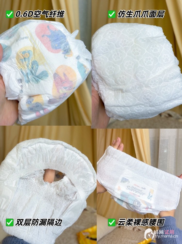 ✨5D仿生爪爪面层,软到像树懒的绒毛拥抱慢回弹纤维模拟软垫缓冲,小屁屁被稳稳托住,内置反渗透黑科技加速导流,减少尿液残留,加上5D爪印形成的透气通道,夏天也能告别红屁屁!🧊0.1cm超薄芯体,轻得像兔子的脚步告别厚重臃肿,宝宝翻滚爬走都自在,完全没有束缚感,轻薄到几乎隐形,夏天穿小裙子、短裤都不鼓包。🐆0.6D空气纤维,软到让人想rua纤细度只有发丝的1/10,丝滑软乎乎的触感,亲肤度直接拉满,宝宝娇嫩的肌肤完全不会被摩擦泛红。