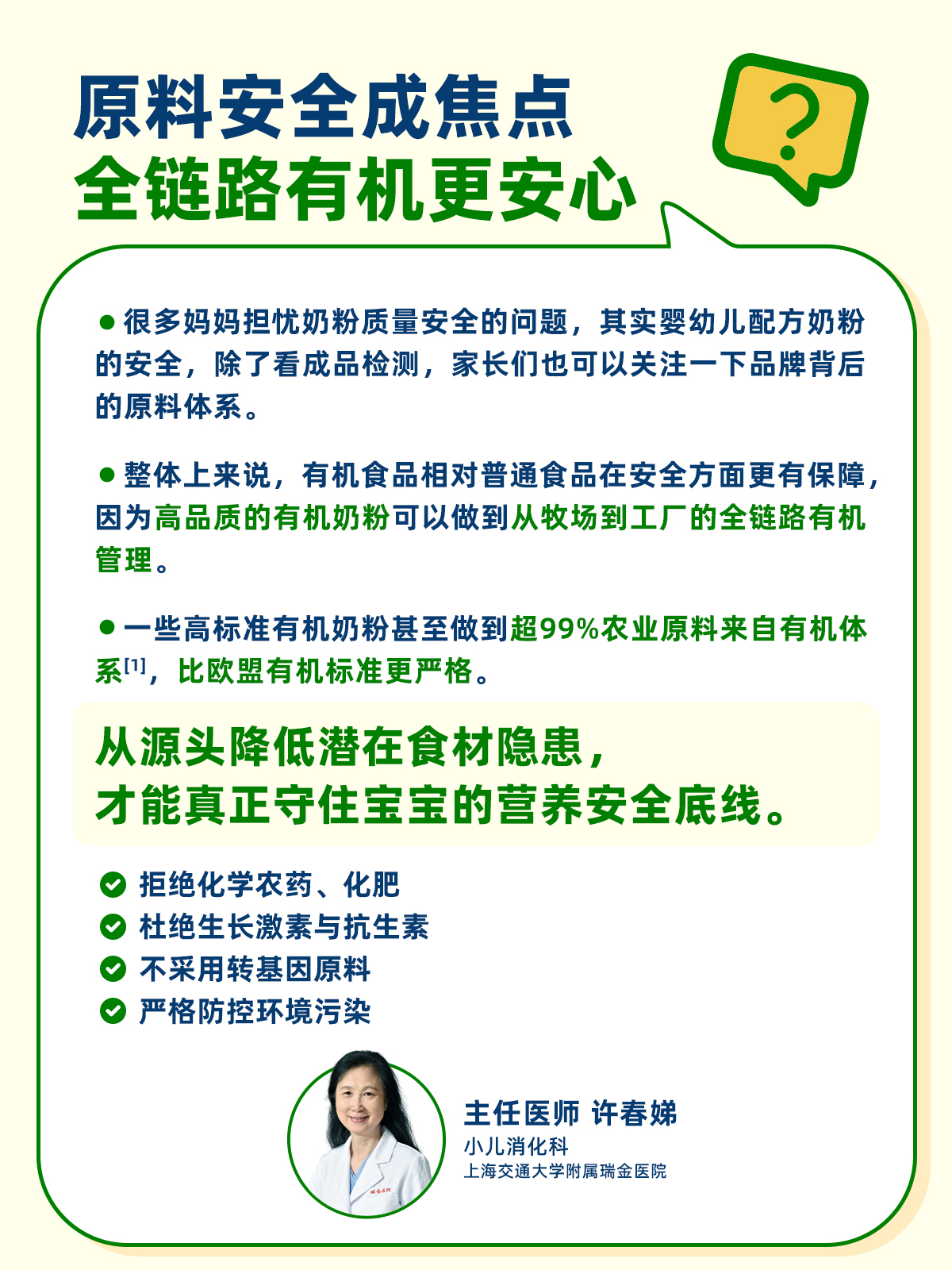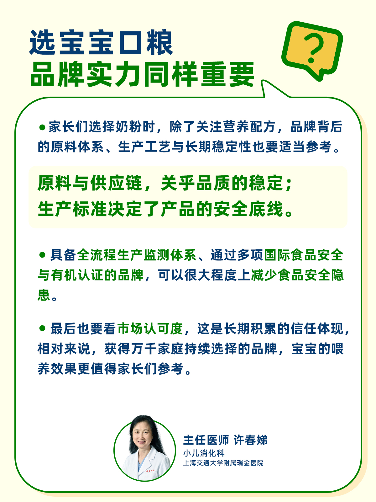 名医科普 | 宝宝口粮安全引关注,家长更该看清这5个选奶关键宝宝口粮的营养与安全一直是家长们的关注点。宝宝正处在人生最重要的成长窗口期——生命早期1000天,营养摄入的安全性与纯净度,直接影响发育基础。一罐奶粉,看似普通,却涉及奶源、配方、原料供应链、生产管控等多个环节。任何一个环节出现隐患,都可能成为家长看不见的“风险点”。那如何为宝宝挑选一款真正让人放心的安全好奶粉?听听权威儿科专家的答案!