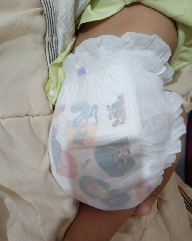 这款纸尿裤最让我惊喜的是它的材质。内层接触面异常柔软,如同棉柔毛巾般亲肤,完全没有某些品牌那种塑料质感。立体护围设计贴合宝宝腰部和大腿,我宝宝属于肉肉腿型,但完全没有出现勒痕。魔术贴材质升级,反复调整也不易失去粘性,这点对于好动的宝宝非常友好。我特别测试了它的夜间表现。睡前更换一片,到早上整整10小时后,纸尿裤明显增重但表面仍然干爽。吸收层将尿液均匀导流,没有出现局部鼓包下坠的现象。我用纸巾按压测试,返渗量极小,宝宝早晨的小屁股依然保持干爽,这在过去使用的品牌中很少见。透过纸尿裤表面的微孔,可以观察到良好的透气性。宝宝使用期间没有出现红屁股现象,即使是闷热的午后。纸尿裤整体轻薄,不影响宝宝活动,这一点比我之前用的品牌提升明显。尿显条清晰灵敏,颜色变化明显,对于新手父母很友好。图案设计清新可爱,联名款太好看了。总体性价比令人满意。我会继续回购,尤其推荐给需要整夜安睡解决方案的宝妈们。如果宝宝皮肤敏感或好动易漏,这款值得一试。