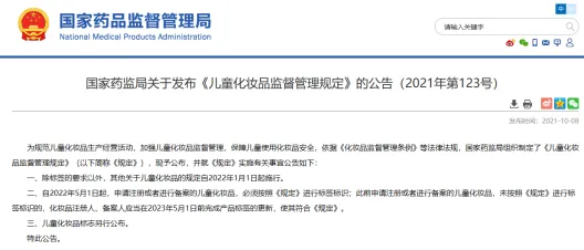 另外,《儿童化妆品监督管理规定》明确规定,儿童化妆品标签不得标注食品级、可食用等词语或者食品有关图案。