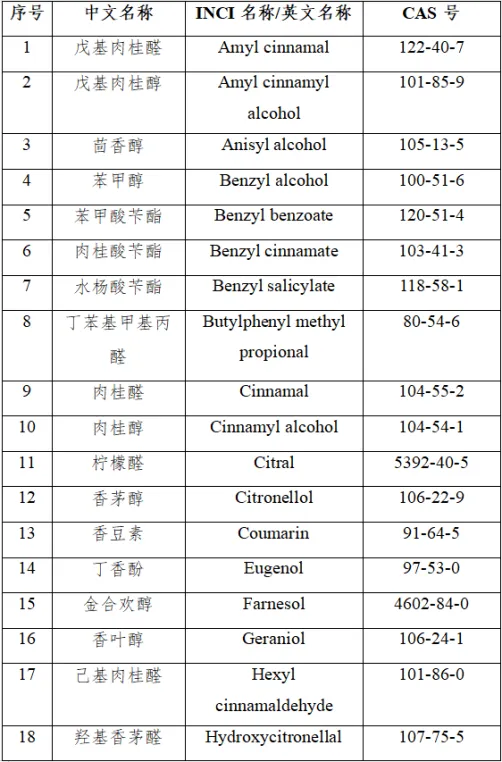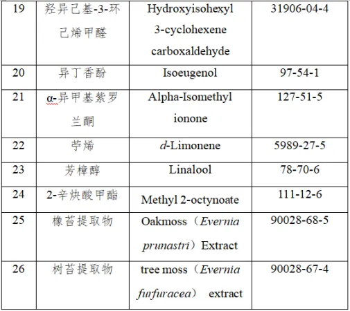 26种可能致敏的香料组分: