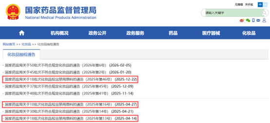 国家药监局最新通告:45批次化妆品不合格,其中儿童护肤品防腐剂超标6倍多。国家药品监督管理局在2025年先后发布的3次通告,有7款“儿童护肤类”产品检出含有特比萘芬、酮康唑等抗真菌类药物。