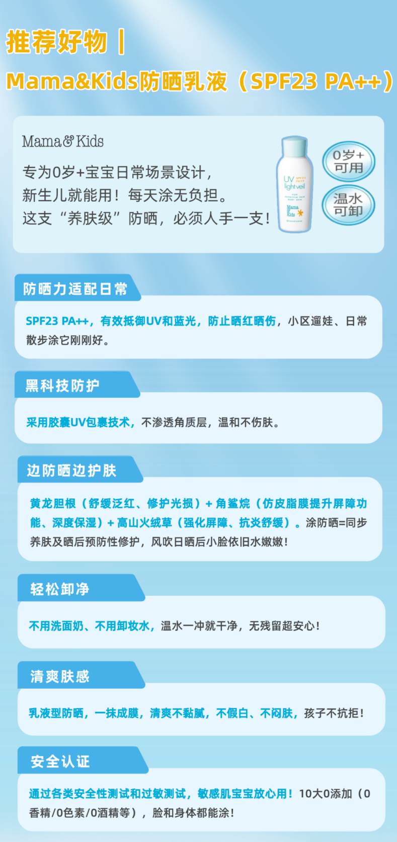 宝妈们,别等晒红才后悔!防晒是宝宝的第一层“保护盾”🛡 现在下单Mama&Kids防晒乳液,✅新生儿可用 ✅温水可卸 ✅10大0添加,给宝宝温柔守护!💪